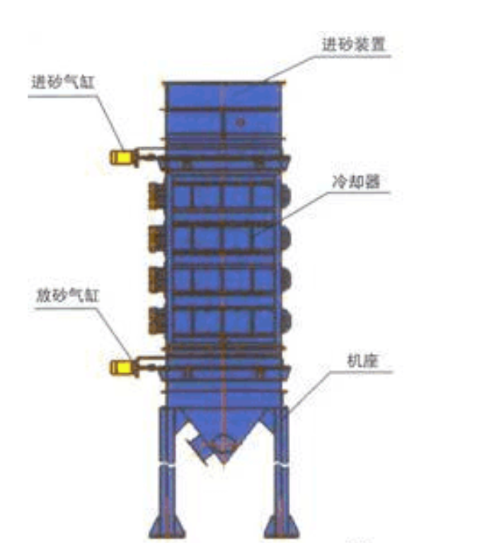 2、節能:本設備無需動力,采用生產線配備的冷卻水,型砂依靠重力向下蠕動,通過控制下落過程達到控制砂溫的目的。